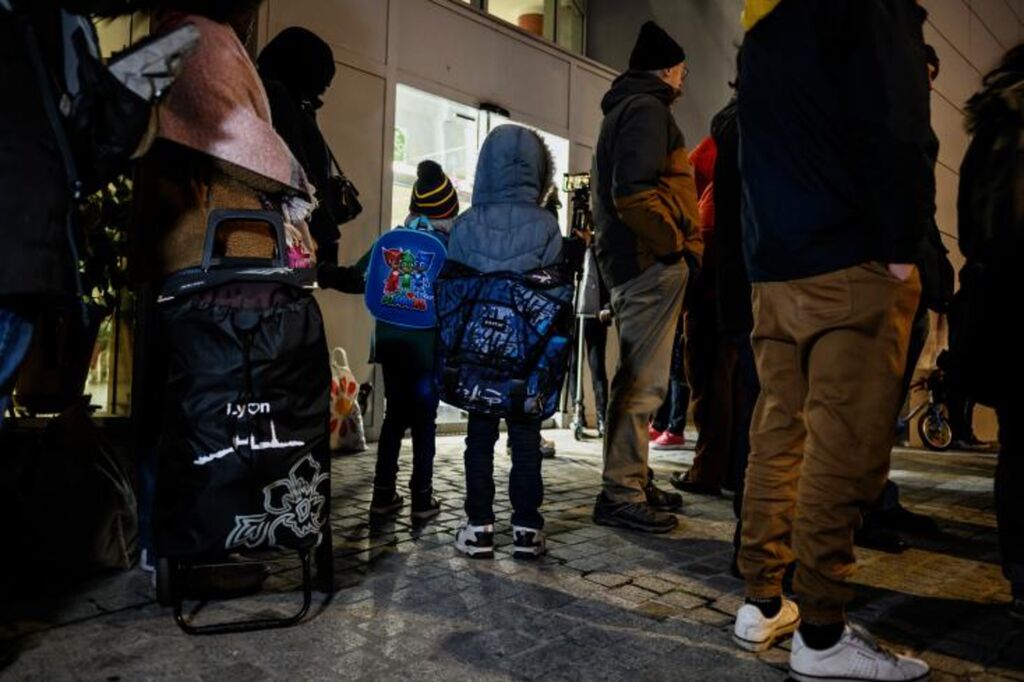 | Des familles sans abri quittent un hôtel où elles avaient été hébergées pendant les vacances, le 8 janvier à Lyon. |