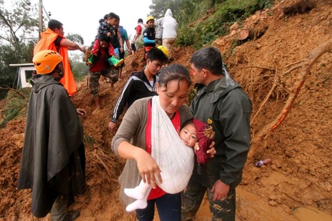| Évacuation de familles après une coulée de boue à Itogon provoqué par le typhon Mangkhut, le 16 septembre aux Philippines. |