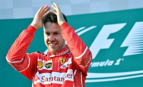| Le pilote allemand Sebastian Vettel (Ferrari), victorieux du Grand Prix d'Australie, le 26 mars à Melbourne |