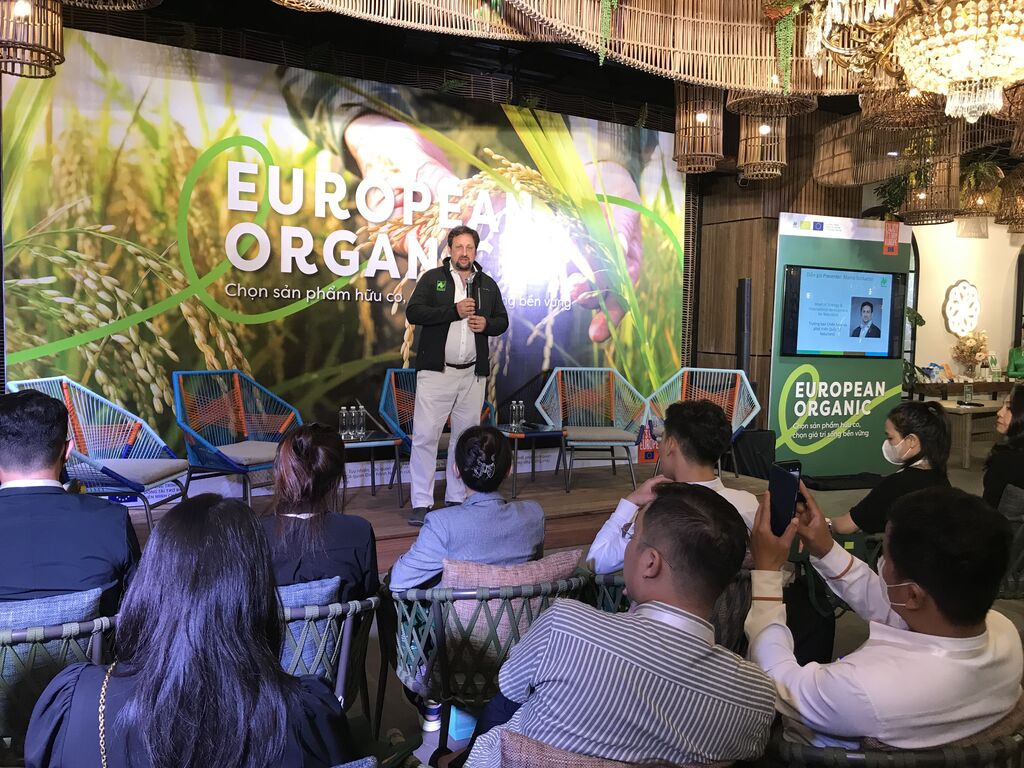 | Marco Schlueter, responsable de la stratégie et du développement international de Naturland partage des opportunités de coopération et d’élargissement du marché des produits bio au Vietnam. |