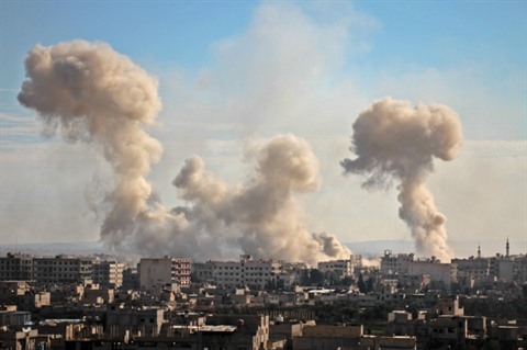 | Des bombardements dans la région de la Ghouta, en Syrie, le 19 février 2018. |