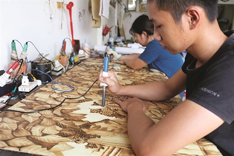 "Les grands pyrograveurs et la chaleur des électrodes posent toujours des difficultés aux jeunes dessinateurs. Certains doivent attendre très longtemps avant de maîtriser leur utilisation. Un grand tableau nécessite parfois des mois de travail. Quand l’œuvre est achevée, elle est recouverte d’un vernis pour la protéger des moisissures", a indiqué Nguyên Truong Khoa, un dessinateur de 35 ans dont 10 ans de travail dans cet atelier.