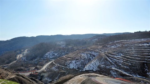 | Vue du site de la mine d'or dans les montagnes de Skouries (Nord). |