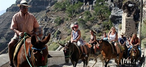 Dans un communiqué samedi 28 juillet, la mairie a annoncé avoir réuni âniers et associations de protection des animaux, pour garantir "le respect des droits et du bien-être des ânes" qui assurent le transport des touristes du port au chef lieu de l'île, Thera, perché à quelques centaines de mètres plus haut.
