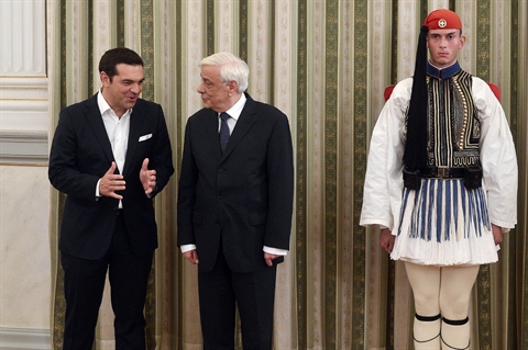 | Le Premier ministre Alexis Tsipras (gauche) du parti de gauche radicale Syriza lors d'un entretien avec le président grec Prokopis Pavlopoulos, le 21 septembre à Athènes |
