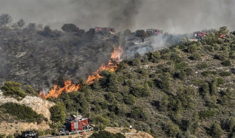 Attisées par des vents forts, les flammes se sont rapidement propagées sur les contreforts du mont Hymettus dans les régions de Glyfada et de Voula, menaçant les zones habitées.