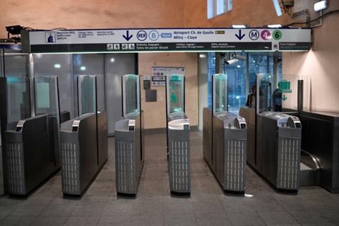 | Portillons vides à la station Denfert-Rochereau, le 13 septembre 2019, jour de grève RATP. |