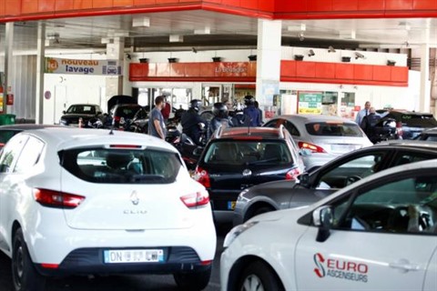 | File d'attente à une station-service d'Issy-les-Moulineaux, le 31 mai. |