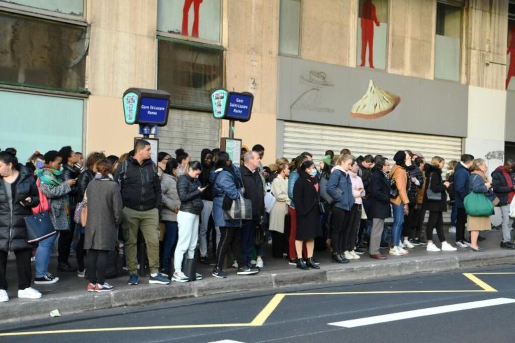 | Des voyageurs attendent un bus à la gare Saint-Lazare à Paris le 10 novembre, lors d'une grève. |
