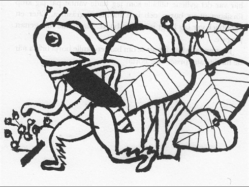 La foule en liesse chantait en choeur puis chacun embrassa son voisin et se mit à danser. Ce fut alors une sarabande endiablée où tous se trouvaient fraternellement mêlés, coléoptères et orthoptères, gens de la rizière ou de la forêt peuple des hautes branches ou mineurs des terriers, ronge feuille, ronge racine ou ronge bois. Je montai à la tribune pour un solo à ma manière : je lançais mes stridulations les plus mélodieuses en dansant la bourrée. Taupe-Grillon nageait dans la joie. Si tout à l’heure il s’était tu, c’était par crainte de me voir refuser les fonctions de chef de canton.
