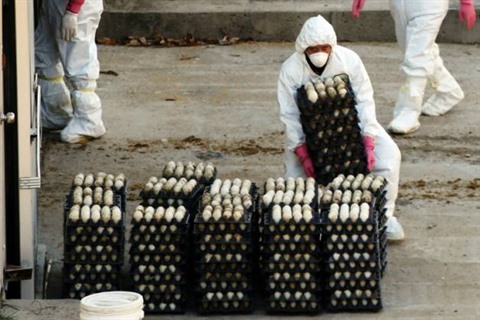 | Des agents sanitaires collectent des œufs susceptibles d'être contaminés par le virus de la grippe aviaire, le 26 janvier 2014 à Naju, en Corée du Sud. |