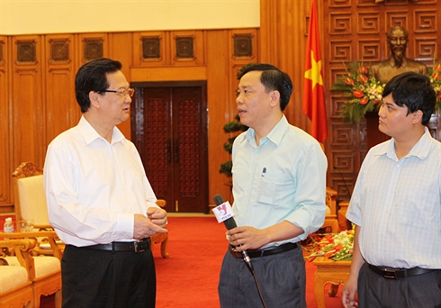 | Le Premier ministre Nguyên Tân Dung (1er à gauche), a accordé une interview à l'Agence Vietnamienne d'Information |
