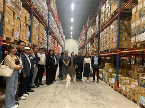 | La délégation vietnamienne visite un entrepôt de distribution de produits importés en Norvège. |