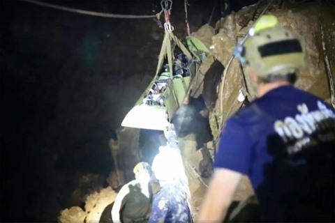 Le chef de la cellule de crise, l'ex-gouverneur de la province de Chiang Rai, Narongsak Osottanakorn, a annoncé mercredi soir 11 juillet le démantèlement de la cellule, lors d'une conférence de presse où ont été diffusées les premières images de ce sauvetage hors normes, avec des enfants sous sédatifs évacués sur des civières, équipés de masques de plongée. Pendant deux semaines, la Thaïlande a vécu au rythme des avancées et déboires des sauveteurs, qui ont exploré tous les pistes d'extraction avant de se décider pour des plongeurs, la piste d'une évacuation à la verticale de la grotte, par un puits creusé dans la montagne étant au final abandonnée.