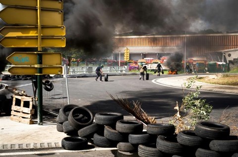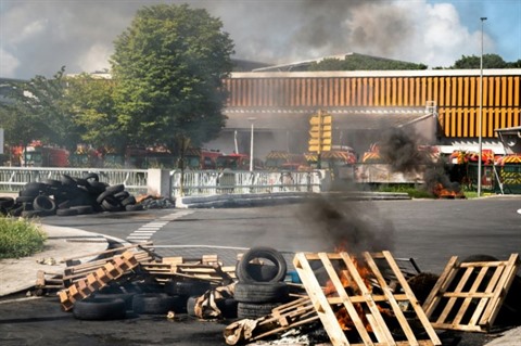 | Un barrage routier installé par des manifestants en Guadeloupe, le 17 novembre 2021. |