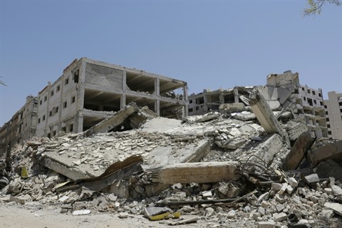 | Des bâtiments détruits par les combats à Alep, deuxième ville de Syrie, reprise par le régime après d'intenses bombardements. Photo prise le 5 juillet 2017. |