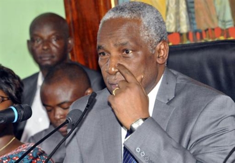 | Le président de la Commission électorale guinéenne Bakary Fofana s'exprimant le 17 octobre 2015 au siège de l'Assemblée nationale à Conakry. |