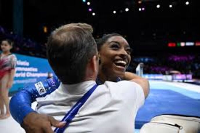 Biles comptabilise désormais 22 titres mondiaux pour 29 médailles. Elle signe un retour époustouflant au niveau international, deux ans après des JO de Tokyo exténuants marqués par l'épisode des "twisties", ces pertes brutales et imprévisibles de tout repère dans l'espace.