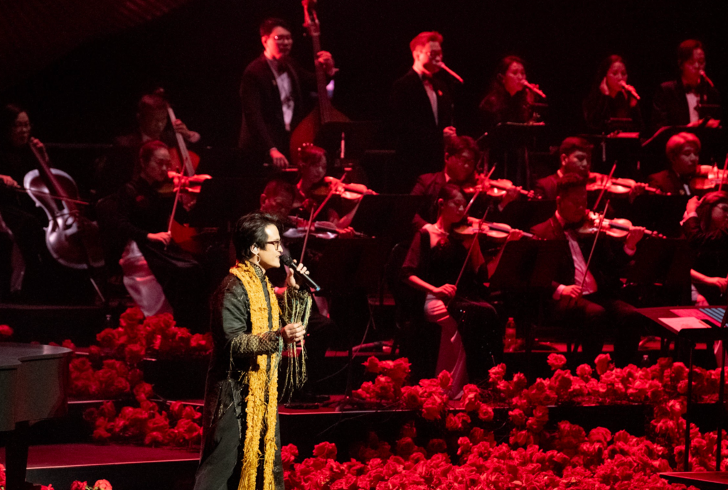 Plus de cent membres de l’équipe artistique (musiciens, choristes et techniciens) avaient traversé le Pacifique pour recréer cet univers poétique. Sous les jeux de lumière sophistiqués du Dolby, la rose semblait respirer, palpitant au rythme des mélodies vietnamiennes.