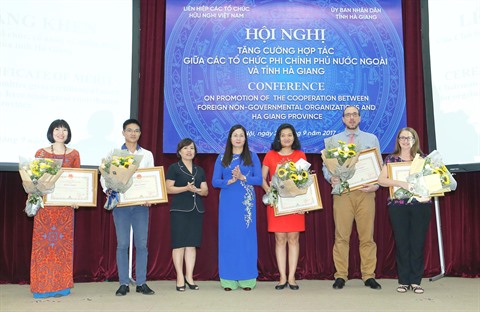| Remise des satisfecit aux ONG étrangères ayant les contributions au développement de Hà Giang, le 22 septembre à Hanoï. |
