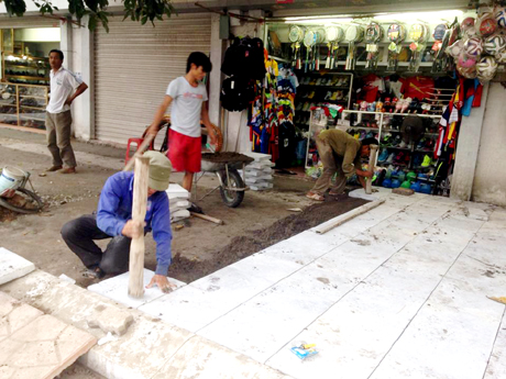 | Réfection des trottoirs du quartier de Hon Gai, ville de Ha Long. |