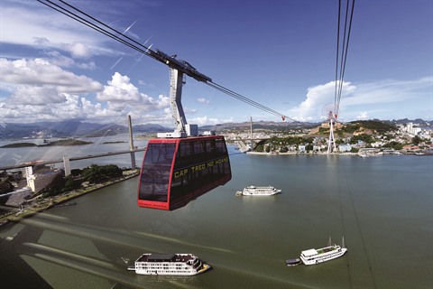 Ces deux zones sont reliées par le réseau téléphérique de «la Reine». Ses deux cabines peuvent recevoir chacune jusqu’à 230 personnes sur deux étages et s’élever au-dessus de la plus belle baie du Vietnam à une hauteur phénoménale. Un des pylônes de l’ouvrage mesure 188 m de hauteur, ce qui est encore un record mondial ! Sur une longueur de plus de 2 km, le visiteur peut donc maintenant voler, tel un oiseau, à la vitesse de 36 km/h, au-dessus de la fantastique baie de Ha Long. Une expérience mémorable.