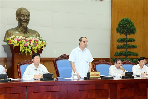 | Le vice-Premier ministres Nguyên Thiên Nhân (debout) préside la conférence en ligne du gouvernement, le 11 juillet à Hanoi |
