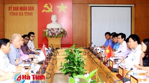 | Séance de travail entre les autorités de Hà Tinh et des investisseurs singapouriens, le 15 août dans cette province du Centre. |