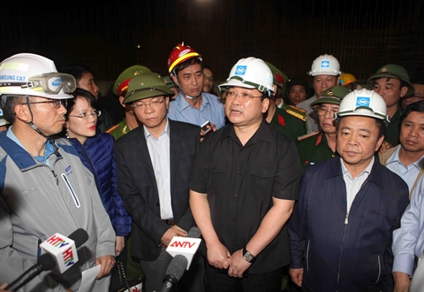 | Le vice-Premier ministre Hoàng Trung Hai (centre) sur place de l'accident le 26 mars. |