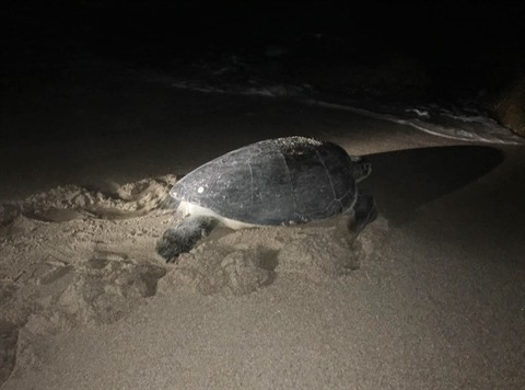 | La tortue rare relâchée dans la mer à Hà Tinh (Centre). |