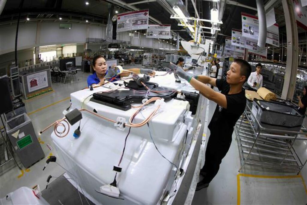 | Assemblage de réfrigérateurs dans l’usine de LG Electronics Vietnam à Hai Phong. |