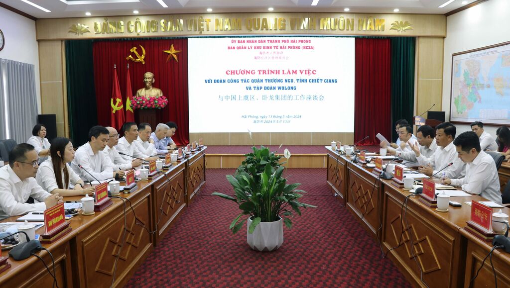 | Séance de travail entre l'Autorité de la zone économique de Hai Phong (HEZA) et le district de Shangyu de la ville de Shaoxing, province du Zhejiang de Chine. |