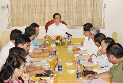 | Le chef du gouvernement Nguyên Tân Dung (centre) travaille le 3 octobre avec les responsables de la ville portuaire de Hai Phong. |