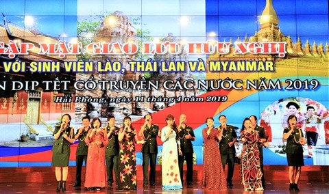 | Un numéro artistique lors de l'échange d'amitié avec des étudiants laotiens, thaïlandais et birmans, le 11 avril à Hai Phong. |