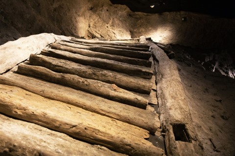 | Un escalier de bois de 8 mètres de long vieux de 3000 ans découvert dans la mine de Hallstatt en Autriche et exposé aux visiteurs, le 16 août. |