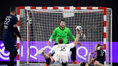 | Le gardien du Paris-SG, Yann Genty, lors de la demi-finale de la Ligue des champions contre Aalborg, à Cologne, le 12 juin. |