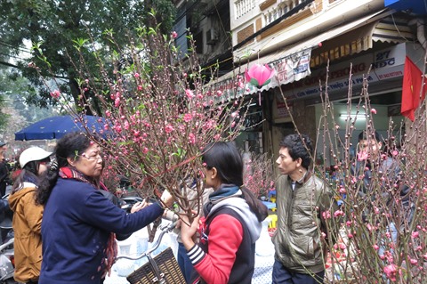 Selon Bùi Thi Huê, domiciliée dans l’arrondissement de Hoàn Kiêm, "il y a beaucoup de sortes de fleurs ici. Personnellement, j’achète chaque année une branche de pêcher ou un kumquat. Je mets toujours une branche de pêcher et un vase d’œillets d'Inde sur l’autel des ancêtres".