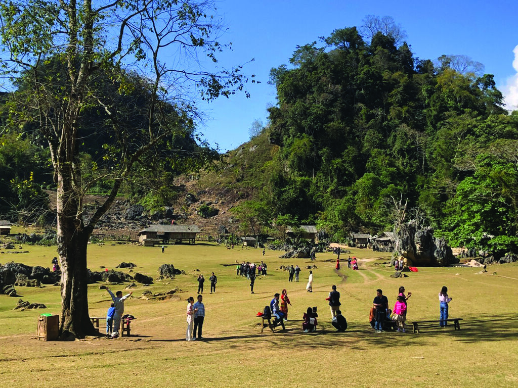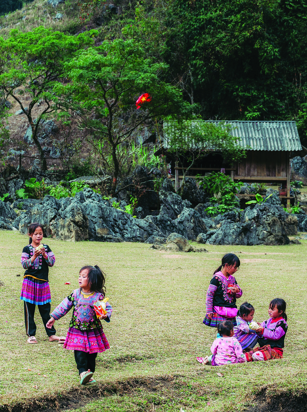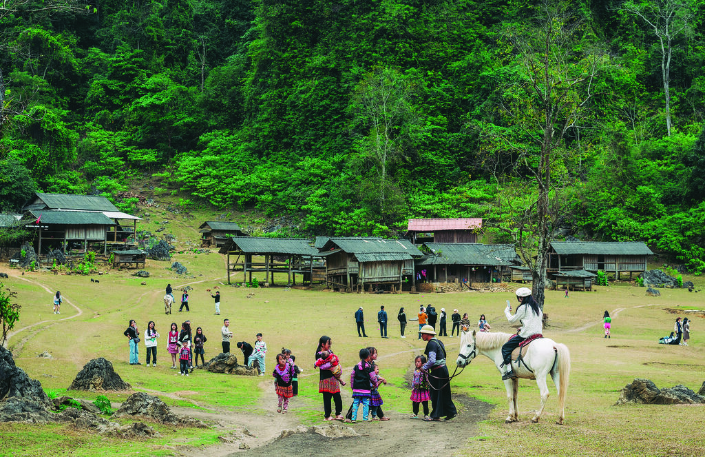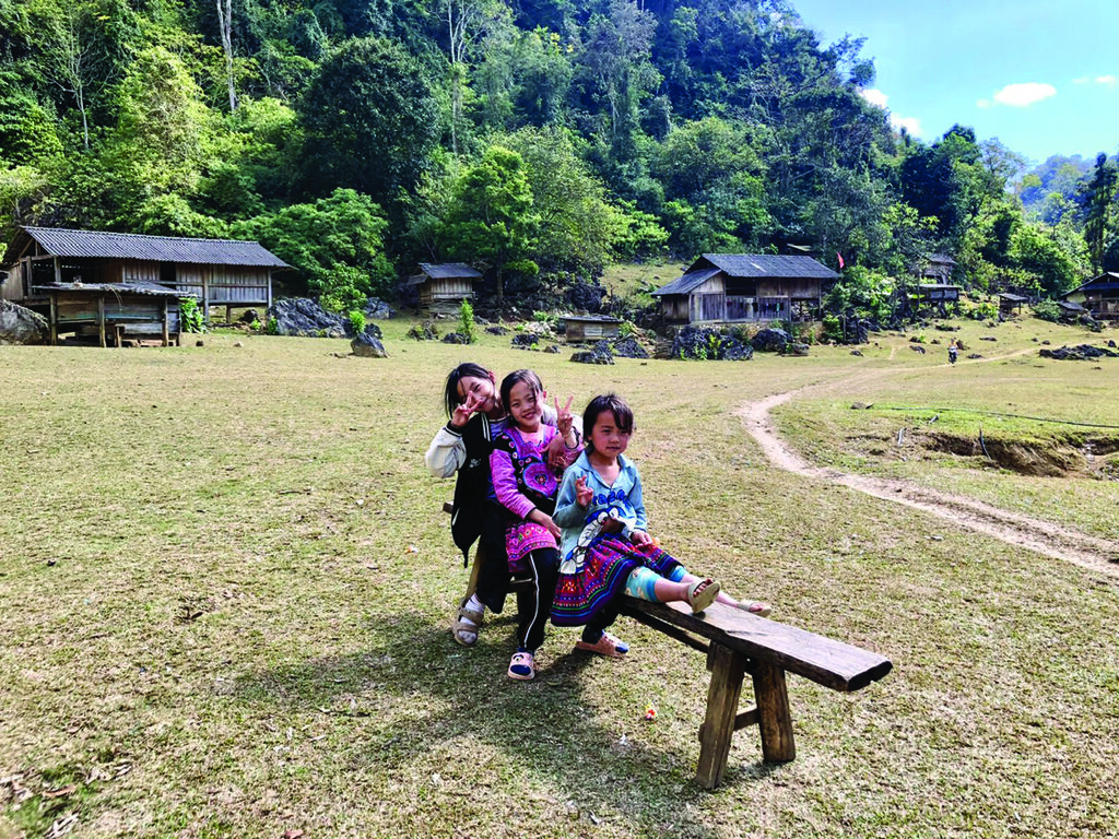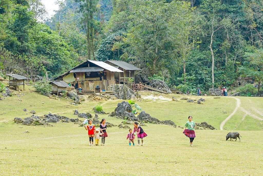 Raide et escarpé, le chemin n’en est pas moins charmant, notamment au printemps, en raison de la richesse des paysages, entre montagnes, prairies et vallées de pruniers blancs et de choux jaunes en pleine floraison, créant un tableau de couleurs vives sur un fond verdoyant. Hang Táu est un village d’une vingtaine de maisons de la minorité ethnique H’mông, construites à partir de matériaux naturels tels que la terre, la pierre, l’argile, le bois et le bambou. Il s’agit d’un pôle agricole d’environ un hectare, avec un grand champ au centre du village.