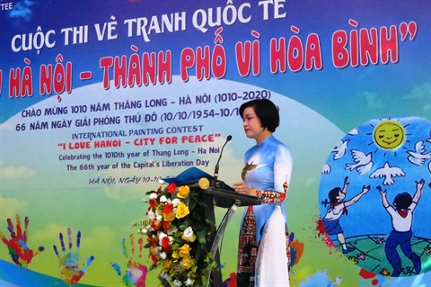 | Le concours de dessin "J’aime Hanoï - ville pour la paix" a été organisé le 10 octobre dans la capitale. |