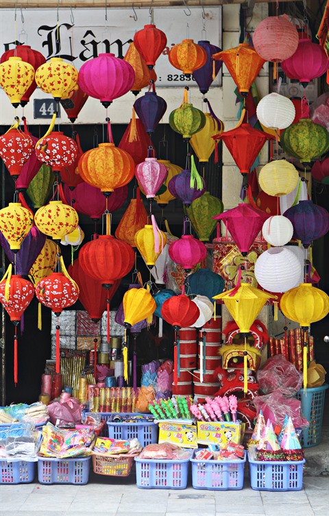 | Les lanternes colorées dans la rue de Hàng Ma (rue d'objets votifs). |