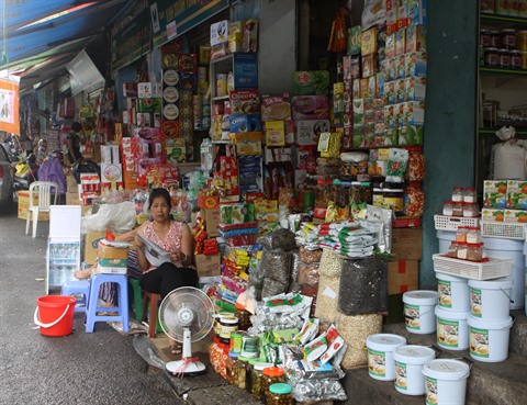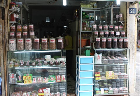 | Une boutique d'O mai (fruits confits) au carrefour de Hàng Duong et Ngo Gach. |