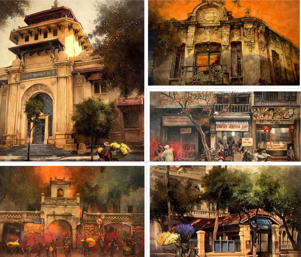 En tant que Saïgonnais amoureux de la capitale Hanoï, le peintre Hoàng Phong dévoile un impressionnant ensemble d’aquarelles sur Hanoï intitulé "Un peu d'amour pour les rues", composé de 28 peintures sur les rues de Hanoï et réalisées entre fin 2017 et aujourd’hui. Le jeune peintre est méticuleux dans sa mise en page, mais aussi dans le choix des couleurs pour être fidèle à l’esprit de Hanoï qu’il veut véhiculer. Il aime la capitale, ses rues, ses bâtiments, ses activités et ses habitants. La ville millénaire porte l’empreinte de la période coloniale française, reflétée dans les caractéristiques architecturales des écoles, des villas, des musées et des établissements publics.