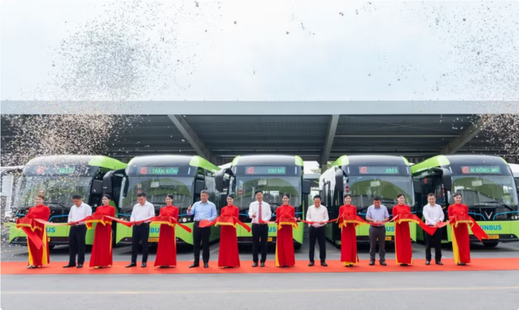 | Cérémonie d'inauguration d'une ligne de bus électrique à Hanoï. |