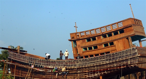 | La construction d'un navire dans le chantier naval de la compagnie Hoàng Minh, basée dans la ville de Rach Gia, province de Kiên Giang. |