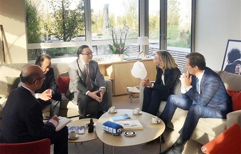 | Hoàng Trung Hai, secrétaire du Comité municipal du PCV (3e de gauche) et Valérie Pécresse, présidente du Conseil régional d'Île-de-France en France. |