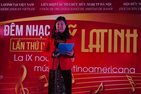 | Nguyên Lan Huong, présidente de l’Union des organisations d’amitié de Hanoï, prend la parole lors du spectacle musical de l’Amérique latine, le 20 décembre dans la capitale. |