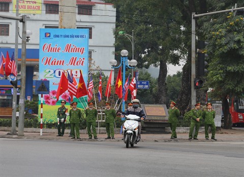 | Une mission de police déployée dans la rue de Ngô Gia Tu, dans l’arrondissement de Long Biên. |