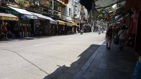 | Le 4 juin à midi, à part quelques touristes, la rue Hàng Duong, dans le Vieux quartier de Hanoi, est déserte. |