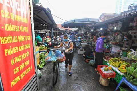 | Aujourd'hui, c'est le 15e jour du 6e mois lunaire. Sur les marchés dans la capitale, la quantité de marchandises reste abondante, assurant un approvisionnement suffisant pour la population. Photo : VNA/CVN |