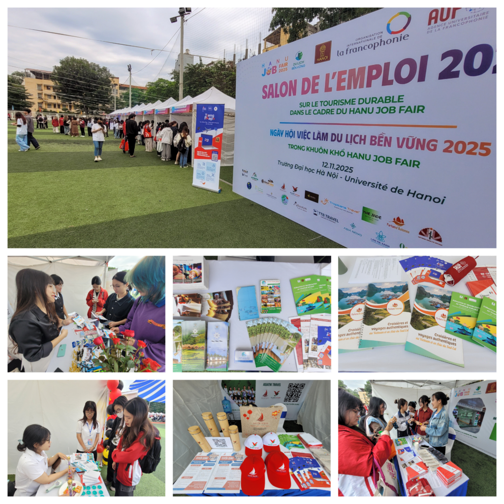 L’Université de Hanoï a organisé, en collaboration avec l’Organisation internationale de la Francophonie (OIF) et le Centre d’employabilité francophone de Hanoï (CEF Hanoï), relevant de l’Agence universitaire de la Francophonie (AUF), un salon de l’emploi dédié au tourisme durable. Cet événement s’inscrit dans le cadre du projet "Formation - Orientation professionnelle et sensibilisation au tourisme durable" 2025 et à l’occasion de l’événement HANU Job Fair (Forum d’emploi en français) de l’Université de Hanoï.